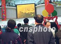 北京市民5日聚集在一家商廈內的巨幅電視屏前,密切關注被美機撞毀的中國軍用飛機飛行員下落的最新消息。中新社記者 王瑤 攝
