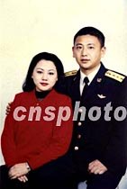 中國飛行員王偉與妻子(資料圖片)
