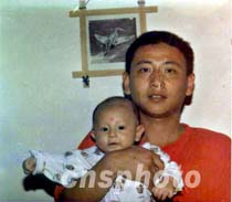 舔犢情深,中國飛行員王偉幾年前在家中與其子合影。(資料)中新社圖