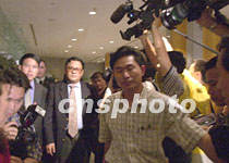 海南省政府外事僑務辦公室主任陳辭,九日晚八時許同美國駐華使館官員第四次與美機組人員見面后返回海口文華酒店。他在此間舉行的新聞發布會上指出,海南人民要求美方停止此類的偵察活動,并就此事件向中國人民道歉。中新社記者 賈國榮 攝