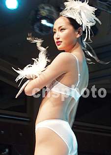 九日晚,在北京嘉里中心飯店舉行的“時尚大蓬車”內衣時裝秀,吸引了來自京城各處的觀眾,著名內衣品牌“黛安芬”展開中國市場的大型推廣活動。圖為名模趙俊模特展示內衣新款作品。中新社記者 錢興強 攝
