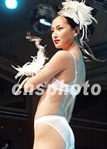 九日晚,在北京嘉里中心飯店舉行的“時(shí)尚大蓬車”內(nèi)衣時(shí)裝秀,吸引了來自京城各處的觀眾,著名內(nèi)衣品牌“黛安芬”展開中國(guó)市場(chǎng)的大型推廣活動(dòng)。圖為名模趙俊模特展示內(nèi)衣新款作品。中新社記者 錢興強(qiáng) 攝