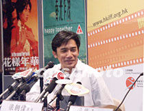 從影十九年的香港影星梁朝偉被選為二十五屆香港國際電影節(jié)的焦點(diǎn)演員,十日與新聞界會(huì)面。中新社傳真 張淑琴 攝