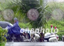 海南省十一日風吹雨打中降溫十攝氏度,警方仍然加強海口市的巡邏,這里此時是撞毀中國戰機的美軍用偵察機機組人員所在地。中新社記者 賈國榮 攝