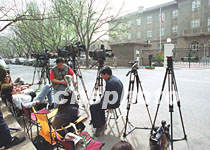 四月十八日,中美“關于美國軍用偵察機撞毀中國軍用飛機事件及相關問題的談判”開始在北京舉行。美國駐華大使館再次成為媒體關注的焦點。中新社圖 史利 攝