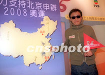 歌星陳奕迅18日在香港出席無線電視制作「支持北京申辦2008奧運大行動」節目記者會。并簽名支持北京申辦2008奧運。中新社傳真 鄧慶樂 攝