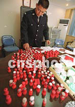 北京西誠警方二十一日夜“嚴(yán)打零點(diǎn)行動(dòng)”中搗毀一個(gè)私刻公章窩點(diǎn),當(dāng)場收繳公章二百余枚。中新社記者 宋吉河 攝