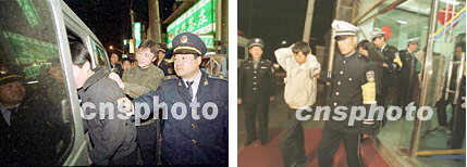 新聞組圖:中國各地嚴打行動 2001年4月25日 10:04 ![]() 圖(1) 圖(2) ![]() 圖(3) 圖(4) ![]() 圖(5) 圖(6) 圖(1)說明:北京西城公安分局、工商局日前聯合在夜間清理音像市場,當場抓獲販賣盜版光盤人員十余名。中新社記者宋吉河攝 圖(2)說明:北京公安西城公安分局日前夜間收容外地進京“三無”人員,全面整頓社會治安。中新社記者宋吉河攝 圖(3)說明:重慶市巴南區二十四日在電影院廣場前公開審判十九名刑事犯罪分子,上千名當地群眾參加了大會,無不拍手稱快。中新社記者趙振清攝 圖(4)說明:福清市公安邊防大隊官兵,23日凌晨在“治爆緝槍專項行動”中,先后破獲二起特大偷運、私藏炸藥案,共查獲土制銨油炸藥5000多公斤、雷管283枚、導火索250米。圖為一名邊防警員在福清海口鎮方新村官下尾路段攔檢一輛裝載有土制銨油炸藥的可疑貨車。中新社圖賀錕陳暉攝 圖(5)說明:中國重慶市巴南區二十四日在該區電影院廣場前公開審判十九名刑事犯罪分子,當地上千名市民圍觀犯罪分子被押上刑車,送往監獄的過程。中新社記者趙振清攝 圖(6)說明:中國重慶市巴南區二十四日在該區影院廣場公開審判十九名刑事犯罪分子,當地千名市民現場目睹犯罪分子被押上刑車,送往監獄的過程。中新社記者趙振清攝 |
