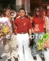 臺灣歌手齊泰、迪克·牛仔等,將于五月十二日在廣州舉行一場音樂創世紀大型演唱會。圖為齊泰、迪克牛仔十一日抵穗與廣州歌迷見面。中新社圖 劉衛勇 攝