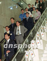 第四屆“中國北京高新技術產業國際周”十五日在北京國際會議中心圓滿閉幕。出席閉幕式的各方人士步出會場。中新社圖 史利 攝