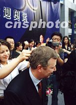 “夏士蓮黑發迎奧運”活動18日在上海舉行啟程儀式,該活動征集全國各地自愿者的頭發編成五環標志,以表達中國人的奧運心。活動主辦方之一中英合資聯合利華公司的外方代表為中國申奧當眾剪發捐獻。中新社圖 姜煜 攝