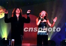 大陸歌手孫悅和臺灣歌手迪克牛仔五月十八日晚在福州同臺獻演《明月千里寄相思》,期盼兩岸分離的局面早日結束,贏得數萬名觀眾的熱情喝彩。中新社圖 黃峰 攝