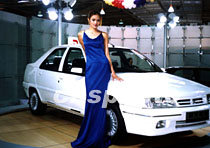 中國五月的昆明“世博2001”汽車品牌展示會上,出現了三十多位各種打扮的汽車模特,這些模特為本屆展示會增添了靚麗色彩。中新社圖 納家驊 攝
