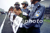 中國安徽省繁昌縣公檢法部門三十日召開“公捕公判”大會(huì)。十一名犯罪分子在 六十余名荷槍實(shí)彈的警察和武警戰(zhàn)士押解下進(jìn)入體育場并被公開宣判。中新社圖 吳芳 攝