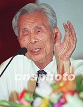 中國當代著名畫家吳冠中一日在清華大學舉辦的“藝術與科學”國際學術研討會上,就“藝術與科學之間的關系”等問題接受新聞媒體采訪。中新社記者 張勤 攝