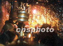 藏歷四月到拉薩大昭寺內(nèi)的釋迦牟尼佛像前頂禮膜拜的藏民人如潮涌。藏歷四月是藏族著名的“轉(zhuǎn)經(jīng)節(jié)”,據(jù)說是佛主誕生、圓寂、成佛和文成公主進(jìn)藏的日子。中新社記者 滿會喬 攝