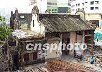始建于雍正元年,孫中山曾批示要“永遠保留”的廣州錦綸會館,因位于正在修建的康王路上,將被整體向后向西平移一百五十米,成為中國第二例文物建筑平移工程。圖為將被平移的錦綸會館。中新社圖 羅仰明 攝