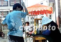 西藏拉薩的一位時髦青年正在八廓街上等著裁縫為他縫制衣服。如今身著時髦現代服裝的年輕人在拉薩街頭比比皆是。中新社記者 滿會喬 攝
