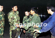 浙江省玉環(huán)縣的巡邏隊(duì)員夜間在刑事案件多發(fā)地段巡查。這支在“嚴(yán)打”中協(xié)助警方治理社會(huì)治安的夜巡隊(duì)伍,已抓獲犯罪嫌疑人六百五十六名,協(xié)助警方破案一百五十四起。中新社圖 於建偉 攝