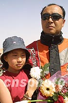 圖文:申奧車隊抵達“天下第一雄關”嘉峪關 2001年6月12日 10:05 ![]() 挑戰珠峰極限的駕車英雄楊華在歡迎儀式上與愛女相擁而泣。魏孝明 攝 ![]() 六月一日,嘉峪關人楊華和張長順成功攀登珠峰大本營,創造了駕車登山五千八百米的吉尼斯世界紀錄。圖為楊張二人十一日在嘉峪關外迎接“萬里行”申奧鳳凰車隊,共同為北京申奧助威。魏孝明 攝
