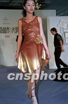 模特出身的新晉歌手王秀琳12日在香港為「好男好女-第六屆杰出青年設計(形象創作)大獎」展示本地時裝設計新秀的作品《陽光》,結果與另一參賽作品《變種》并列大獎。中新社圖 鄧慶樂 攝