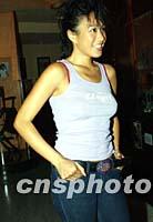香港明星鍾麗緹28日在繽紛荷里活拍攝造型照片,與娛樂記者笑談近況。中新社圖 洪少葵 攝