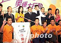 組圖:特備節(jié)目「邁向2008奧運大行動」舉行記者會 2001年07月05日 22:30 ![]() 無線電視特備節(jié)目「邁向2008奧運大行動」5日舉行記者會。韓毓霞(中)及潘芳芳(右)前赴莫斯科報道奧運申辦投票結(jié)果,及采訪北京現(xiàn)場氣氛。香港體育協(xié)會暨奧林匹克委員會會長霍震霆頒受「旗開得勝」旗幟予兩人。中新社圖 鄧慶樂 攝 ![]() 特備節(jié)目「邁向2008奧運大行動」5日舉行記者會。香港體育協(xié)會暨奧林匹克委員會會長霍震霆聯(lián)同體協(xié)會副會長許晉奎、馮劉掌珠、秘書長彭沖等與運動員許長國、胡兆康及眾藝員出席頒受「旗開得勝」旗幟儀式。中新社圖 鄧慶樂 攝