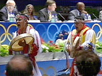 多倫多申奧花絮:土著歌舞開場(chǎng)助申奧(附圖) 2001年07月13日 16:30 ![]() ![]() ![]() ![]() 中新網(wǎng)莫斯科7月13日消息:多倫多申奧代表團(tuán)陳述開場(chǎng)別開生面:三名印第安藝人身著民族服裝,手執(zhí)土風(fēng)樂器,載歌載舞進(jìn)入會(huì)場(chǎng),贏得了在場(chǎng)國際奧委會(huì)委員的掌聲。 首先代表多倫多發(fā)言的是一位盛裝的土著代表,他對(duì)在場(chǎng)的奧委會(huì)委員們說,歡迎各國朋友能到“偉大的城市多倫多”。他希望2008年奧運(yùn)會(huì)能在多倫多舉辦。 |