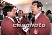 組圖:北京代表團為申奧陳述做好充分準備 2001年07月13日 19:34 ![]() 7月13日,國際奧委會112次會議在莫斯科世界貿易中心舉行,會議將表決2008年奧運會舉辦城市。圖為劉淇(左)與袁偉民在場外交談。中新社記者 王瑤 攝 ![]() 7月13日,國際奧委會112次會議在莫斯科世界貿易中心舉行會議,表決2008年奧運會舉辦城市。圖為中國著名運動員劉璇(中)、黃志紅會前接受采訪。中新社記者 王瑤 攝