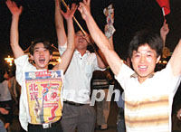 圖:外地打工仔慶祝北京申奧成功 2001年07月14日 07:25 ![]() 幾名在北京打工的年青人,13日夜在北京天安門廣場歡呼慶祝北京申奧成功。中新社記者 趙振清 攝