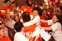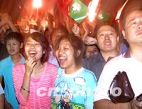 組圖:沸騰的北京 沸騰的莫斯科 2001年07月14日 07:35 ![]() 中國僑界十三日在北京華僑飯店歡慶北京申辦2008年奧運成功,圖為國務院僑辦、僑聯(lián)領導與華人華僑熱烈祝賀的場面。中新社記者 王麗南 攝 ![]() 北京申奧成功,數萬中國人聚集天安門廣場呼喊、歡騰,表達內心的喜悅。中新社記者 王麗南 攝