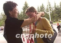 圖:莫斯科使館喜贈(zèng)中國(guó)結(jié) 2001年07月14日 11:41 ![]() 中國(guó)駐莫斯科大使館為歡慶北京申辦二00八年奧運(yùn)會(huì)成功舉辦盛大酒會(huì),禮儀人員在門口首先向出席嘉賓的頸上贈(zèng)掛紅彤彤的中國(guó)如意結(jié)。中新社記者 賈國(guó)榮 攝