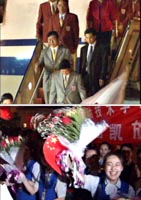 ![]() 北京奧運(yùn)會(huì)申辦代表團(tuán)七月十四日晚載譽(yù)從莫斯科回到北京。 ![]() 中國(guó)國(guó)務(wù)院副總理李嵐清十四日晚率領(lǐng)北京奧運(yùn)會(huì)申辦代表從莫斯科載譽(yù)回到北京。圖為,李嵐清在機(jī)場(chǎng)與前來(lái)迎接的國(guó)家副主席胡錦濤熱烈擁抱。