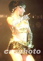 在北京申奧成功之際,2001CCTV-MTV音樂盛典,十五日在北京舉辦歡慶申奧成功,評選歌手現場投票活動。圖為年輕歌手身穿前衛(wèi)時裝載歌載舞盡興表演。中新社記者 錢興強 攝