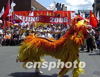 圖:紐約華埠舉行慶祝北京申奧成功大會 2001年07月16日 20:08 ![]() 美東時間七月十五日中午,在美華人慶祝北京申奧成功大會于紐約華埠舉行。當(dāng)?shù)厝A人華僑用傳統(tǒng)的舞獅祝賀中國的勝利。中新社記者 陳建 攝
