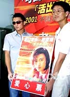 組圖:謝霆鋒在上海為演唱會(huì)做前期推廣 2001年07月19日 21:16 ![]() 香港歌手謝霆鋒七月十九日在上海為其演唱會(huì)做前期推廣。“可口可樂(lè)謝霆鋒活出真精彩2001中國(guó)巡回演唱會(huì)”將于七月二十八日在可容納八萬(wàn)人的上海體育場(chǎng)舉行。謝霆鋒希望屆時(shí)更多的歌迷能了解他、接近他。中新社記者 潘索菲 攝 ![]() 新天王謝霆鋒十九日在上海向上海慈善基金會(huì)慈善助學(xué)的受助學(xué)生代表贈(zèng)送本月二十八日在此間舉行的“可口可樂(lè)謝霆鋒活出真精彩演唱會(huì)”的門(mén)票。中新社記者 潘索菲 攝