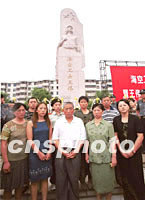 圖文:“?招l士”王偉的塑像在浙江湖州落成 2001年08月02日 06:19 ![]() 中國“?招l士”王偉塑像落成典禮八月一日在浙江省湖州市鳳凰公園廣場舉行,由花崗巖制作的王偉塑像高10米、寬2.2米、厚2.3米、重約80噸,采用的是南京藝術學院青年教師、著名雕塑家李廣玉構思的設計方案。中新社圖 張全躍 攝 ![]() 中國“?招l士”王偉塑像落成典禮八月一日在浙江省湖州市鳳凰公園廣場舉行,王偉父母王明、王月琴(中)、妻子阮國琴(右)、姐姐(右四)等親屬與近千名各界群眾和當地駐軍官兵參加了儀式并合影留念。中新社圖 張全躍 攝