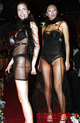 圖:歐美內衣及泳裝表演在香港舉行 2000年4月29日 09:55 ![]() 2000歐美內衣及泳裝表演28日在香港舉行,模特展示神秘性感的歐美內衣。中新社傳真鄧慶樂攝 |