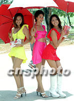 圖:泰國靚女裸露裝引人注目 2001年08月13日 10:37 ![]() 泰國的八月,驕陽似火,三名身著艷麗裸露裝的靚女,手持太陽傘,在佛統(tǒng)市街頭行走,格外引人注目。中新社記者 趙振清 攝