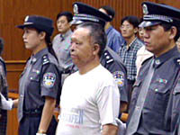 圖文:“法輪功”天安門自焚事件制造者被審判 2001年08月17日 11:00 ![]() 北京市第一中級人民法院十七日對今年一月二十三日制造天安門廣場自焚事件的五名“法輪功”涉案人進行了一審公開宣判。 ![]() 十七日上午,北京市第一中級人民法院對五名制造天安門廣場自焚事件的“法輪功”癡迷者進行一審判決,以故意殺人罪判處劉云芳無期徒刑、剝奪政治權利終身。