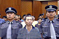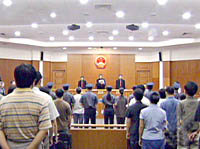 組圖:“法輪功”天安門自焚事件制造者被審判 2001年08月17日 20:47 ![]() 北京市第一中級人民法院十七日對今年一月二十三日制造天安門廣場自焚事件的五名“法輪功”涉案人進行了一審公開宣判。 ![]() 十七日上午,北京市第一中級人民法院對五名制造天安門廣場自焚事件的“法輪功”癡迷者進行一審判決,以故意殺人罪判處劉云芳無期徒刑、剝奪政治權利終身。
