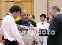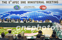 ![]() 二十九日在上海開幕的第八屆APEC中小企業部長會議上,與會官員和代表紛紛關注上海的媒體信息。中新社記者 潘索菲 攝