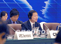 組圖:APEC中小企業部長會議在上海開幕 2001年08月29日 14:37 ![]() 第八屆APEC中小企業部長會議八月二十九日在上海國際會議中心開幕。中新社記者 潘索菲 攝 ![]() 二十九日在上海召開的APEC中小企業部長會議主題是:“新世紀、新挑戰:創新與發展環境”。圖為會議主席、中國國家經濟貿易委員會主任李榮融作開幕講話。中新社記者 潘索菲 攝