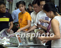 ![]() 廣州市民十分關注美國受到恐怖襲擊事件。十二日清晨,人們紛紛上街購買當天報紙,令不少報紙脫銷,報社不得不連忙加印。某晚報還加出號外。中新社圖 梁永強 攝