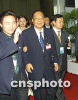 全國人大常委、著名華商曾憲梓十七日在南京市參觀華商大會的經貿交流展覽會。中新社記者史利攝