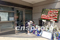 圖:美國駐香港總領事館門前獻花人不斷 2001年09月17日 17:40 ![]() 美國紐約世貿中心受攻擊后,每天都有人到美國駐香港總領事館獻花悼念遇難者。9月17日美國駐香港總領事館再度關閉,但依然不時有人在緊閉的大門外獻上寄托哀思的鮮花。中新社傳真 任晨鳴 攝 |