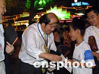 圖:貝聿愷為南京小市民簽名留念 2001年09月18日 14:10 ![]() 出席華商會的美國美中經貿促進會會長貝聿愷十七日晚在南京著名景區秦淮河畔游覽時,為熱情的南京小市民簽名。中新社記者 鄭萍萍 攝 |