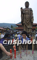 圖:華商靈山求親情 2001年09月18日 21:39 ![]() 參加華商大會的代表們十八日在淡淡的細雨中游覽著名景區太湖,久別家鄉的華商紛紛在靈山大佛前為家鄉的父老祈福。中新社記者 鄭萍萍 攝 |