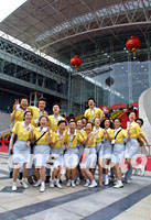 圖:志愿者即將謝幕華商大會 2001年09月19日 11:38 ![]() 為期三天的第六屆世界華商大會十九日將在南京謝幕時,忙碌了數天的志愿者抽空在主會場前合影留念。中新社記者 鄭萍萍 攝 |