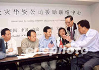 圖文:紐約成立"911受災(zāi)華資公司援助聯(lián)絡(luò)中心" 2001年09月21日 06:01 ![]() 美國(guó)中國(guó)商會(huì)和亞洲文化企業(yè)有限公司共同設(shè)立了"911受災(zāi)華資公司援助聯(lián)絡(luò)中心"。第2天,中國(guó)駐紐約總領(lǐng)館的商務(wù)官員來(lái)到中心看望義務(wù)工作者。圖為姚定康向領(lǐng)館官員和媒體介紹聯(lián)絡(luò)受難者的情況。中新社圖 龔文謨 攝